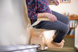 Detail,Of,Senior,Woman,Sitting,On,Stair,Lift,At,Home
