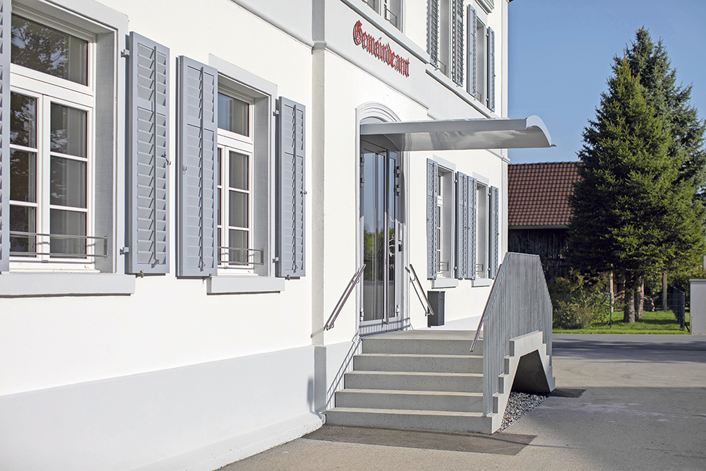 Das Gemeindeamt ist Teil eines historischen Ensembles mit Pfarrhaus, Fachwerkhaus und Klostergebäude und stellt ein Stück gelebte Ortsidentität dar. Obwohl keine Denkmalschutzauflagen bestanden, wurde der historische Charakter bewusst bewahrt. Fenstergröße und -teilung sowie Proportionen bleiben identitätsstiftend. Die Läden an den Fassaden wurden erneuert, sind jetzt aus Aluminium und damit pflegeleicht und witterungsbeständig. Der Verzicht auf radikale Eingriffe schuf Freiraum für gezielte Modernisierung mit dem Ziel, den Geist des Hauses zu erhalten.Das neue Gemeindeamt steht beispielhaft für den respektvollen Umgang mit Bestand: Ein Ort, an dem Tradition, Funktionalität und Zukunftsdenken ineinandergreifen. Das Projekt zeigt, dass es möglich ist, historische Gebäude nicht nur zu erhalten, sondern ihnen neues Leben einzuhauchen – durch Präzision im Detail, Mut zur Modernisierung und Wertschätzung für das, was war.